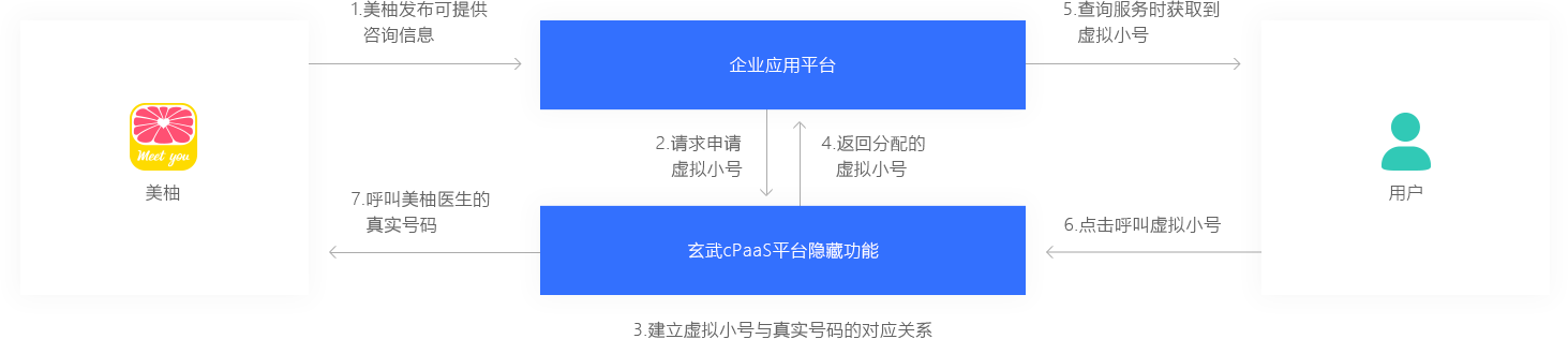 厦门美柚股份有限公司在美柚APP发布相关的可提供咨询业务,用户通过APP查询并可以直接电话咨询相关医生。玄武云可配置cPaaS平台隐号通话功能,并提供虚拟小号实现“安全隐私通话”服务,保证通话双方的隐私安全。